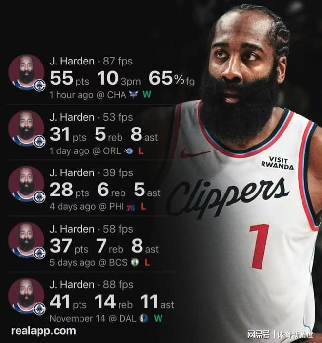 看看哈登最近的表現吧!盡管有人質疑他已老去,但他卻在最近的5場比賽中狂轟192分,用了自己的實力與價值。這或許就是英雄主義的魅力所在——即便看清了現實的殘酷與無情,也從不屈服于逆境的挑戰。他的真實命中率高達47.4%,三分命中率更是達到了驚人的45.2%。同期,能夠與他相提并論的,恐怕只有那些同樣在球場上書寫傳奇的巨星們了。