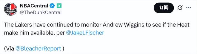 洛杉磯湖人隊本賽季很可能會在交易截止日前尋求鋒線深度補強,目前一位攻防兼備的鋒線球員已進入球隊視野。北京時間11月24日,據NBA名記Jake Fischer報道,湖人已對熱火隊前鋒維金斯表現出興趣,并將持續關注其動態,觀察維金斯最終是否會被擺上交易貨架。