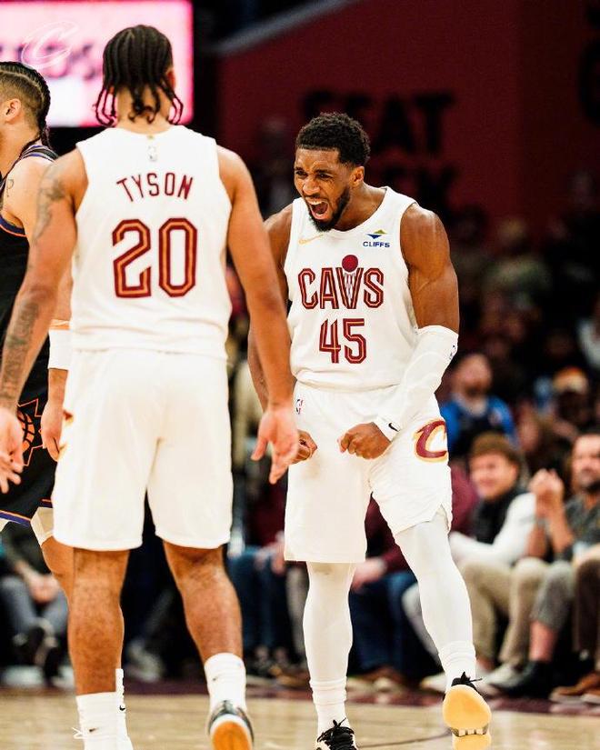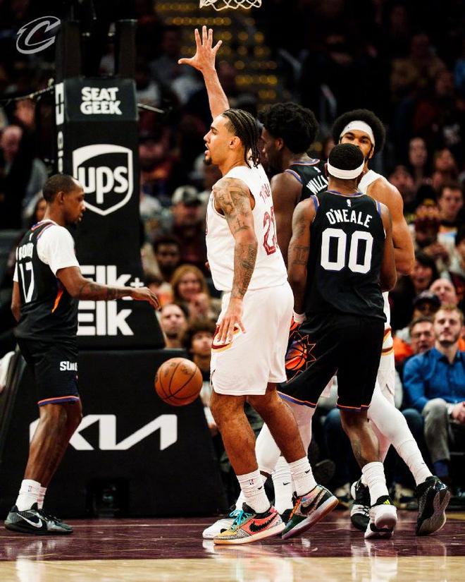 次節比賽,騎士連續兩節單節得分30+,太陽也是首次單節得分30+展開對攻。騎士率先擴大46-26領先20分優勢,并在之后維持50-33領先優勢,太陽反撲追到差10分。米切爾繼續攻傳結合引領騎士維持兩位數領先優勢,騎士單節30-33被追回3分,上半場結束騎士67-54領先太陽。前兩節比賽,太陽三分20中7,狄龍12中7得到20分,布克僅8中3得到6分;騎士三分17中6,米切爾21+7+3、莫布利11+7與梅里爾10分。