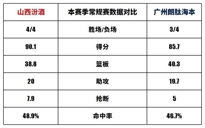 山西汾酒與廣州朗肽海本歷史上一共交手44次,山西汾酒23勝21負。上賽季兩隊交手2次,山西汾酒2勝0負。