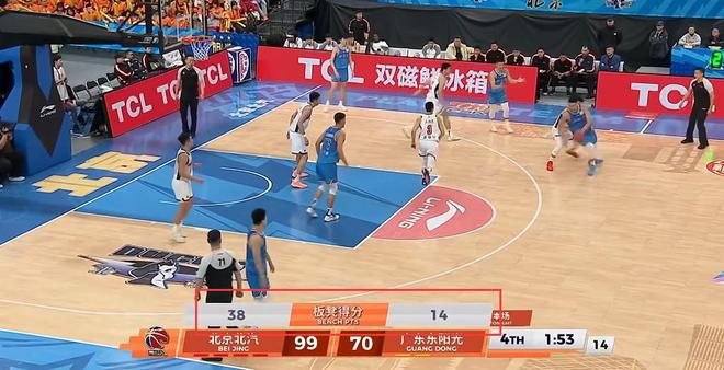 廣東的得分荒還在延續,8分鐘僅得10分,10分全由薩姆納獲得,節末趙睿、曾凡博突破再進,北京領先來到15分。首節北京拿出了總決賽級別防守(徐杰、王洪澤合計6中0),在斯佩爾曼曾凡博合砍21分帶領下,28-14領先廣東。
