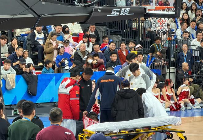 擔(dān)架車也進(jìn)入場內(nèi),最終徐杰被隊(duì)友背出了場外,徐杰這場比賽只打了14分鐘,3中0拿到1分1籃板1助攻。
