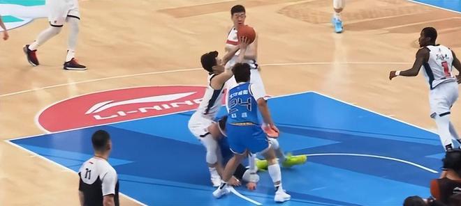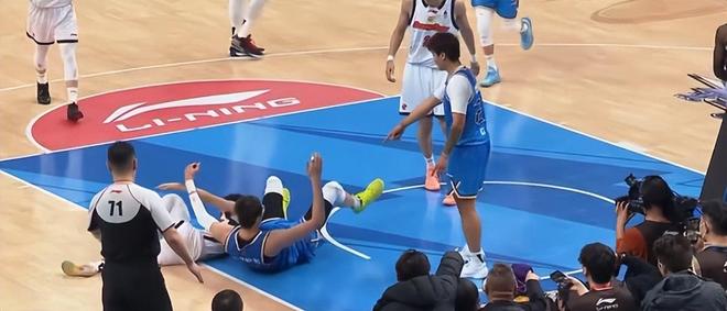 現(xiàn)場不斷地回放周琦撞擊徐杰的瞬間,周琦這個動作肯定是無意的,因?yàn)樗麄€人也在踉蹌中,他226斤的體重?zé)o法控制自己倒地的方向,恰巧徐杰迎上來被撞到。