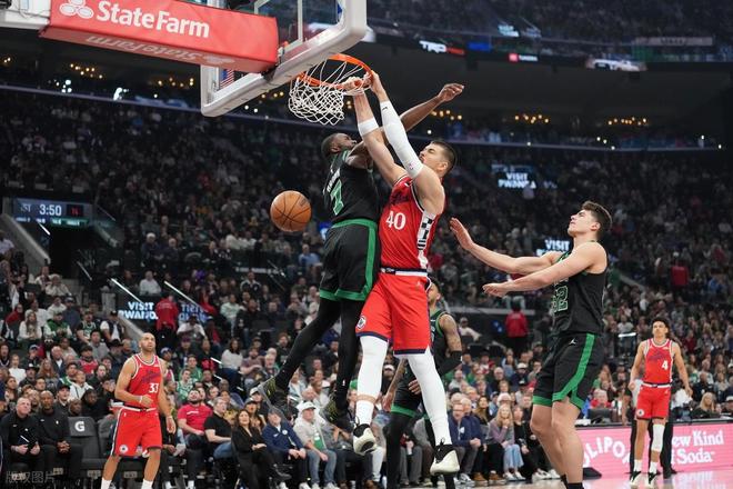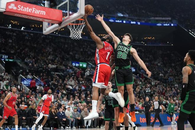 第二節(jié)雙方輪換陣容階段,雙方又是對攻大戰(zhàn),你來我往比分交替上升,快船并沒有縮小分差。綠軍包夾小卡,科林斯籃下2+1以后進(jìn)入暫停。暫停以后,科林斯一個人對飆凱爾特人全隊,連中3記三分,分差回到了個位數(shù)。懷特三分回敬,小卡造犯規(guī)罰球。布朗也連續(xù)造犯規(guī)站上罰球線,66-56進(jìn)入暫停?;氐奖荣?,哈登助攻瓊斯上籃,豪澤底角三分命中。哈登和小卡連得5分,布朗再次罰球,半場結(jié)束快船63-71落后8分。
