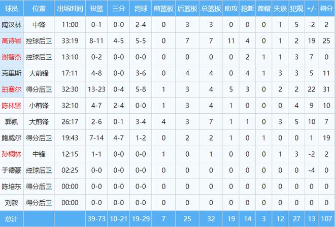 孫桐林在內線人手不足的情況下頂了12分鐘,包辦臟活累活,被撞翻在地的場景屢見不鮮。7.1分,是球迷對他任勞任怨的肯定。郭凱同樣五犯離場,貢獻7分7籃板,表現中規中矩,獲評8.6分。另外,主教練也獲得9.6分的高評分。他在克里斯被驅逐后怒摔西裝表達對裁判的不滿,雖然也被罰回更衣室,但很大程度上激發了其他球員的斗志。