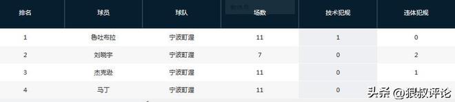 截止目前的11輪,寧波的外籍教練員哈里斯領到了2次技術犯規,但球員席技術犯規就高達6次,領跑聯盟第一。