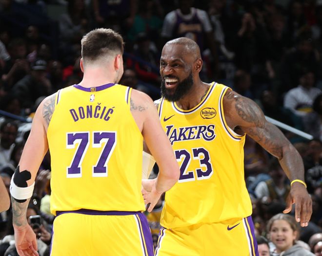 湖人客場(chǎng)挑戰(zhàn)鵜鶘,湖人少了里夫斯、八村、文森特,鵜鶘少了穆雷、薩迪克貝,首節(jié)湖人取得4分領(lǐng)先,第二節(jié)鵜鶘贏了湖人7分,半場(chǎng)戰(zhàn)罷鵜鶘反超3分,第三節(jié)鵜鶘贏了湖人4分,三節(jié)戰(zhàn)罷鵜鶘領(lǐng)先7分,第四節(jié)詹姆斯、東契奇聯(lián)手發(fā)力,湖人單節(jié)贏了15分,最終湖人以8分優(yōu)勢(shì)擊敗鵜鶘。詹姆斯19中10(三分5中3)得到30分8板8助2斷,東契奇22中11(三分10中3)得到30分2板10助2斷,艾頓16中9得到18分11板3助2帽,鵜鶘方面墨菲26中14(三分17中6)得到42分5板3助,錫安13中7得到15分4板5助。