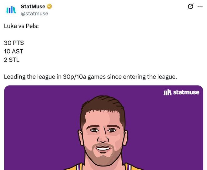 其中東契奇22中11,拿下30分2板10助2斷1帽全能數據,自從東契奇進入聯盟以來,這已經是其第92次單場拿到至少30分10助,同期聯盟第一,特雷楊以91次排在第二。