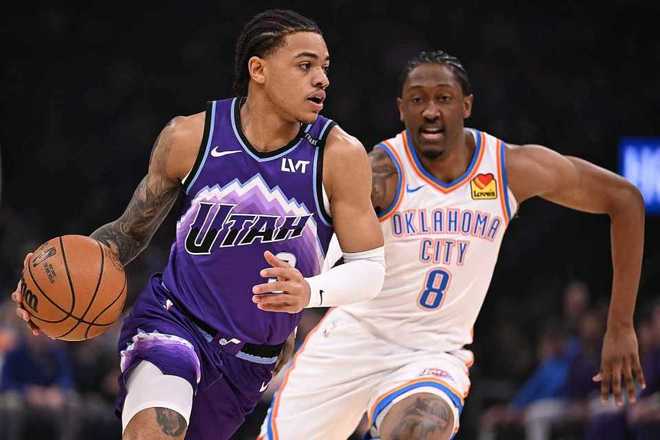 次節(jié)比賽,雷霆進(jìn)攻火力下滑首次單節(jié)得分不足30分,爵士則是首次單節(jié)轟下30+得分。第二節(jié)前3分鐘雷霆打出16-5攻勢,雷霆已經(jīng)擴(kuò)大47-27領(lǐng)先20分優(yōu)勢,但爵士持續(xù)反撲回敬一波26-11攻勢追分。雷霆單節(jié)27-31輸?shù)?分,上半場結(jié)束雷霆58-53領(lǐng)先爵士。前兩節(jié)比賽,雷霆三分20中6,亞歷山大7中4得到14+2+3;爵士三分20中5,馬爾卡寧13+7與喬治12分5助攻。