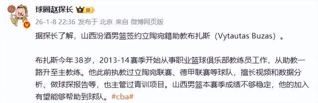 既然外援都做了調整,那么接下來就要考慮教練組了。潘江的實力也就那樣了,只能想辦法補充其他人了。這不,根據球圈趙探長的報道,山西男籃引入了立陶宛籍助教布扎斯(Vytautas Buzas)。