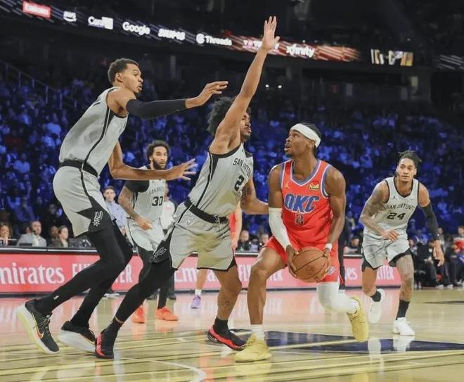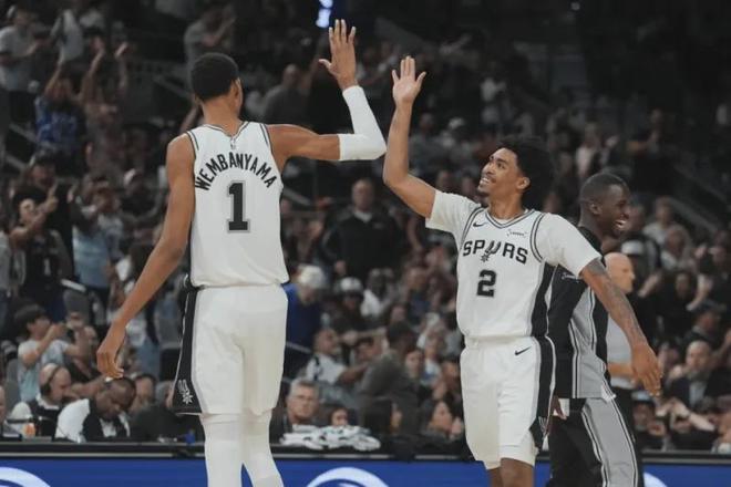 防守端馬刺隊有文班亞馬這個BUG級的聯盟最佳防守球員,所以球隊防守體系非常容易建立,目前球隊防守效率113.1排名全聯盟第6,隊內所有球員在這個體系中都有防守加成,簡單點說,即便第一層外線防守被突破,對手進入內線面對的也是恐怖的文班亞馬封蓋干擾,馬刺隊外線防守球員只需緊跟進攻人,不給投籃空間,甚至可以故意把他驅趕到文班亞馬的防守覆蓋區遭受打擊,防守壓力相比其他球隊減少一個級別.
