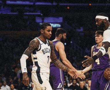 下半場比賽開始,易邊再戰(zhàn),斯馬特的定點三分球空心入網(wǎng),揭開第三節(jié)比賽序幕,AJ格林底角三分球搭弓射箭立馬還以顏色,艾頓的背身勾手,空心打進一球,字母哥加強進攻侵略性,接連沖擊內(nèi)線制造犯規(guī),字母哥幽靈漫步,震蕩灌籃又點燃全場。湖人這邊,東契奇也毫不手軟,節(jié)奏上籃同樣不斷制造殺傷,湖人其他幾個角色球員,這場進攻效率也還行,兩隊第三節(jié)繼續(xù)保持10分左右分差,三節(jié)比賽打完,湖人77-86依舊落后雄鹿9分。末節(jié)決戰(zhàn),克內(nèi)克特和詹姆斯的發(fā)揮幫助湖人轟出15-4的沖擊波完成反超,庫茲馬和字母哥的發(fā)揮幫助雄鹿苦苦緊咬比分。