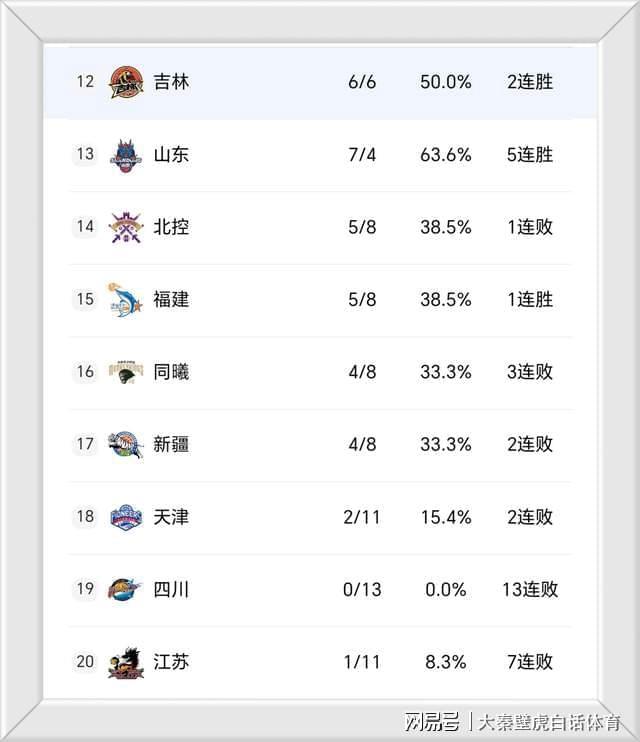 ②、四川隊雖然13戰0勝,卻以多賽一場的優勢反超江蘇隊,暫時擺脫墊底位置。