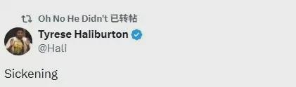 因右腳跟腱撕裂本賽季報銷的步行者當家球星哈利伯頓,直言不諱點評了該場比賽,在個人社媒上寫道:“令人作嘔。”