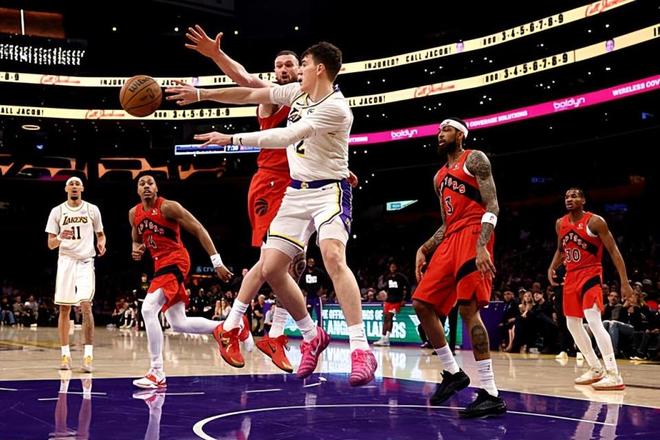 本場比賽中,湖人的先發(fā)鋒線新星杰克-拉拉維亞(Jake LaRavia)的表現(xiàn)顯然是無法令人感到滿意的。拉拉維亞全場出場22分22秒,投籃5中2,三分線外2中2,罰球2中1,得到了7分5籃板1助攻3搶斷4蓋帽的數(shù)據(jù),還有1次失誤和1次犯規(guī),正負值為-15。拉拉維亞在比賽前兩分鐘就連續(xù)命中了兩記三分,直接拿到了6分。然而在接下來的46分鐘,拉拉維亞甚至都沒有命中一記運動戰(zhàn)進球,加起來只得到了可憐的1分,簡直是一件讓人無法理解的事情。不僅如此,他在傳球和策應方面的能力也是沒有發(fā)揮出來的。拉拉維亞在進攻端顯然沒有發(fā)揮出自己的特點,事實上,他在防守端的表現(xiàn)也是非常一般的,同樣沒有起到很好的效果。