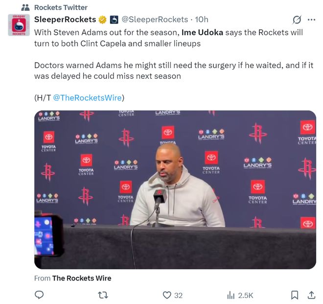賽后根據(jù)美記Rob Murrows的報道,聯(lián)盟有消息人士透露,因為亞當斯左腳踝手術(shù)賽季報銷,火箭隊已經(jīng)開始探索交易安德烈-德拉蒙德,休斯頓對莊神非常感興趣。