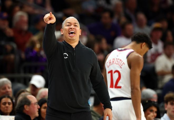 說回比賽本身,原本因為哈登的缺席,快船的進攻輪轉(zhuǎn)還是有所影響的,上半場不過和太陽斗了個旗鼓相當。易邊再戰(zhàn)后,冠軍教頭泰倫-盧開始了他的showtime,他令旗一揮,擺出了祖巴茨+大洛佩茲的雙塔陣容,就是明牌要欺負你快船沒有大中鋒坐鎮(zhèn)了。此舉不可謂不冒險,畢竟太陽這場的三分投射效率還不錯,外線46投19中,三分命中率也有41.3%,但盧指導吃準了外線火力也就這樣,比賽得籃板者才得天下。
