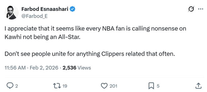 也讓小卡本場持續打破紀錄后,快船隊記Farbod Esnaashari再度為其鳴不平,直言幾乎所有人都對此感到不可思議,也因此讓快船隊內部變得更加一致。