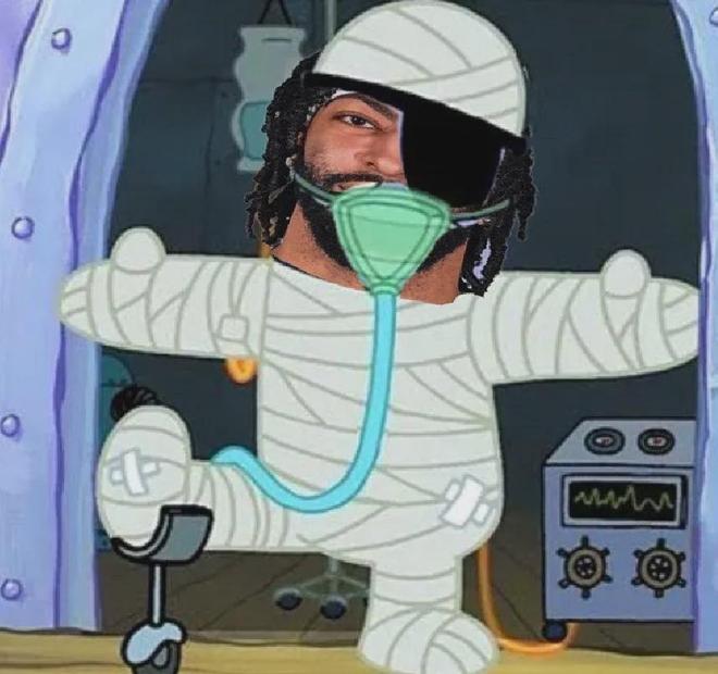 講回濃眉哥,整個獨行俠生涯僅出戰29場比賽,場均亮相30.8分鐘,貢獻20.2分10.8板3.3助1.8帽,三項命中率49.2%、25.4%和71.3%,健康的他依然是當今聯盟最攻防兼備的球員之一,無奈很難保持長期健康,缺勤率遠高于出勤率。