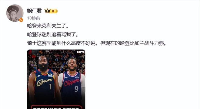 哈登在擋拆進攻中的效率明顯高于加蘭,有望更好地激活騎士的內線球員埃文·莫布里和賈勒特·阿倫。