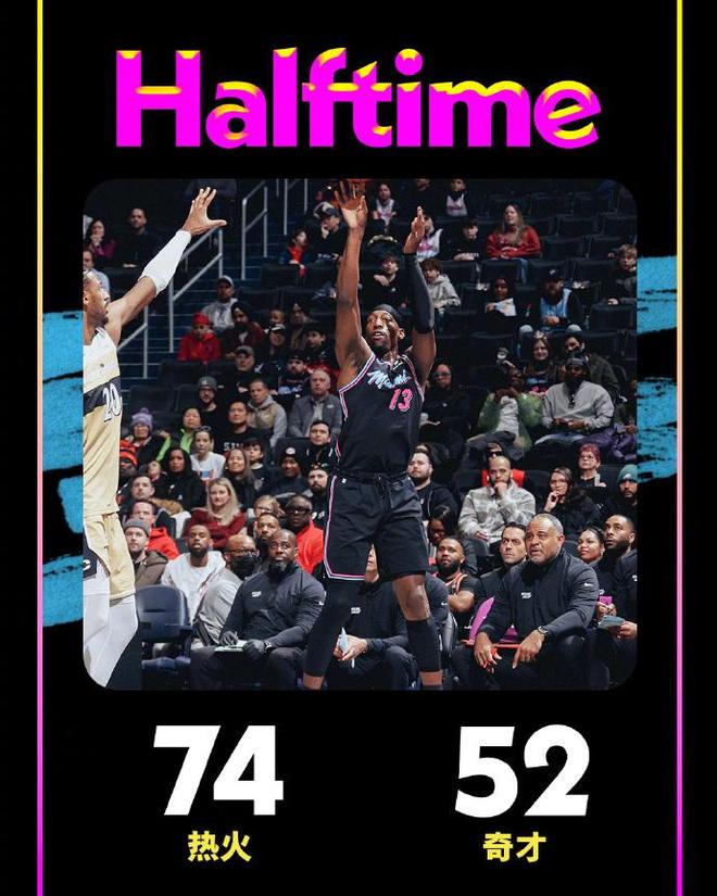 次節比賽,熱火連續兩節單節轟下37分保持旺盛的進攻火力,奇才進攻斷崖式下滑首次單節得分不足20分。前兩節比賽熱火已經多達3人得分上雙,鮑威爾3記三分15分、阿德巴約10中7得到17+6,外加韋爾8中5得到13+9的準兩雙數據,引領熱火已經外線三分23中11。反觀奇才只有喬治3記三分13分一人得分上雙,熱火單節打出37-19攻勢狂勝18分,上半場結束熱火擴大74-52領先奇才22分優勢。