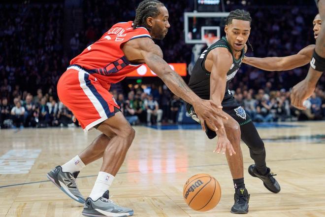 首節(jié)表開打,愛德華茲率先攻進一球,隨后倫納德在防守端積極性拉滿,連續(xù)三次斷球得手,并幫助快船打出10-2的攻擊波!愛德華茲上籃止血,迪文琴佐搶斷助攻戈貝爾暴扣,隨后麥克丹一條龍上籃得手,愛德華茲罰球拿2分,森林狼連追8分,追平比分。倫納德自投自搶自補拿2分,隨后命中3分,又勾手拿2分,快船領先7分!里德拋投打進2分,愛德華茲搶斷一條龍上籃拿2分,蘇道姆上籃打進森林狼首分,幫助森林狼將分差縮小至1分。米勒罰球拿2分,海蘭德命中3分,兩隊戰(zhàn)至19平,首節(jié)最后快船連拿4分,第一節(jié)打完快船23-19領先森林狼。