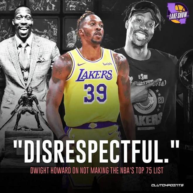 作為曾經的NBA第一中鋒,霍華德也算榮譽滿身,20年跟隨湖人奪冠,3次DPOY,8次最佳陣容,5次最佳防守陣容,5次籃板王,2次蓋帽王,8次全明星,1枚奧運會金牌等等,可能唯一遺憾的就是落選75大巨星。