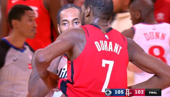 不只是手指,本賽季萊昂納德還遭遇了腳踝扭傷、膝蓋挫傷等傷勢,但他選擇默默忍受,苦苦支撐著帶著快船延續北伐之旅,算上本場比賽,他已經連續第33場單場得分破20了。賽后,小卡有一個舉動引來了大家的廣泛關注和好奇,他和杜蘭特在一邊悄悄聊了好久,還很注意地擋住了自己的嘴巴,防止被拍到,并通過唇語專家了解到他們的聊天內容。考慮到小卡的合同雖然延續到2027年夏天,但因為快船已經意在重建,今夏很有可能將他交易離開,他和KD的這一舉動,也是引發了大家的廣泛遐想。