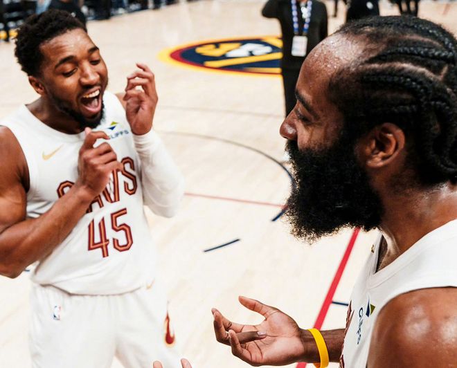 這就是哈登與加蘭最極致的不同:進攻端,哈登是更好的操盤手,自帶體系,硬解能力更強;防守端,哈登更具體型優勢,騎士后場不會輕松被對手點名。米切爾在談到哈登時把話挑明,他直言:哈登能讓我們每個人來到舒適區,我能感受到他的決心,這是我們沖擊總冠軍的機會;哈登本人也放下豪言,他表示:我職業生涯里也沒幾次敢說這種話,但憑我們現在的陣容深度,我敢說,我們有實力奪冠!