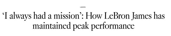 “顯然,我當時不知道會是23年。我不清楚,但我知道我不想只打六七年。六七年成不了傳奇。”詹姆斯告訴《洛杉磯時報》。