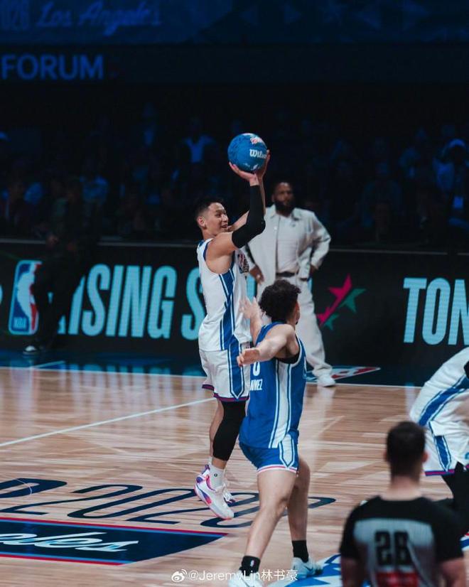此次全明星,他與連續(xù)三年參賽的王鶴棣效力于字母哥隊(duì),林書豪在末節(jié)連中四分球,其中還有一記四分球翻倍,成功得到12分。