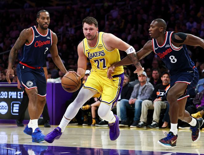 湖人主場迎戰快船,快船是背靠背作戰且少了加蘭、比爾,湖人主力俱在,就紙面情況而言湖人占優,湖人首節三分很準,東契奇單節砍下17分,首節戰罷湖人領先11分,第二節湖人開局把分差擴大到16分,隨后倫納德開啟得分模式,單節得到19分縮小分差,半場戰罷湖人領先7分。第三節湖人開局把分差擴大到15分,隨后快船強勢追分,一度反超2分,但湖人很快重新領先,三節戰罷湖人領先4分。第四節快船一度反超2分,倫納德在比賽還剩5分多鐘時因腳踝酸痛退出比賽,最終湖人125-122擊敗快船。東契奇25中11(三分14中8)砍下38分6板11助3斷,里夫斯15中9(三分5中4)得到29分6板2助2斷,詹姆斯13中5得到13分3板11助。快船方面倫納德19中11(三分6中4)得到31分4板5助、馬瑟林16中7得到26分7板2助、大洛12中7得到16分10板2斷3帽。