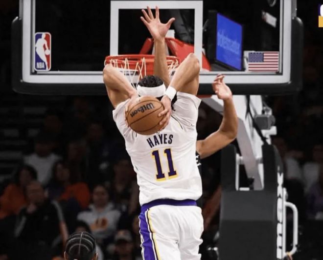 據湖人官方消息,賈克森-海斯因右腳踝傷勢提前退出今日比賽!