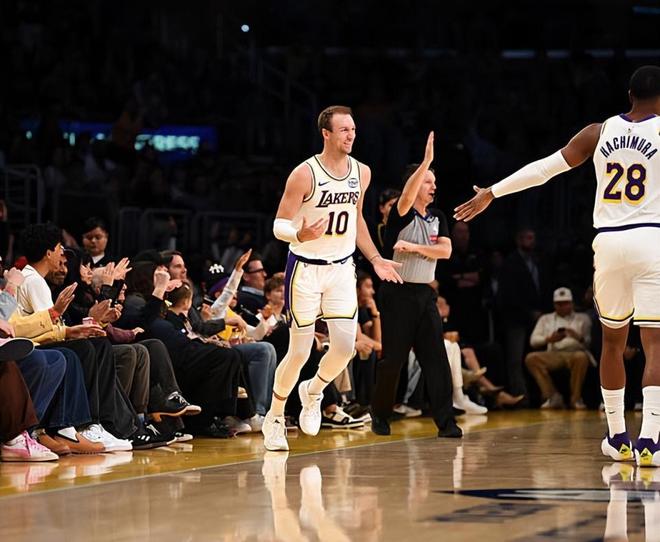 本場比賽中,湖人雖然遭遇了一場慘敗,但是球隊的替補后場新援盧克-肯納德(Luke Kennard)的表現其實還是不錯的??霞{德全場出場21分43秒,投籃4中3,三分線外2中1,罰球2中2,得到了9分3籃板1搶斷的數據,還有1次失誤和2次犯規,正負值為-9??霞{德在本場比賽中的狀態其實相當不錯,他的進攻效率相當出色,他也是抓住了有限的機會得到了不少分數,展現出了全面的得分能力。至于防守端,這本身也不是肯納德的強項,但是他其實也沒有出現什么太大的問題。只是問題就在于,在球隊絕大多數球員進攻效率不佳的情況下,肯納德都無法得到更多的球權支持,他的能力當然也沒有辦法充分發揮出來,他也沒有辦法在這種情況下為球隊提供更多的支持。