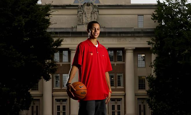首先,我們先來(lái)說(shuō)說(shuō)庫(kù)里,在2009年進(jìn)入NBA之前,庫(kù)里已經(jīng)在NCAA打出了不小的名氣。作為戴維森學(xué)院歷史上最偉大的球員,庫(kù)里在自己的最后一個(gè)大學(xué)賽季,打出了相當(dāng)恐怖的表現(xiàn)。場(chǎng)均可以貢獻(xiàn)28.6分、4.4個(gè)籃板、5.6次助攻和2.5次搶斷,成為了整個(gè)NCAA的得分王。