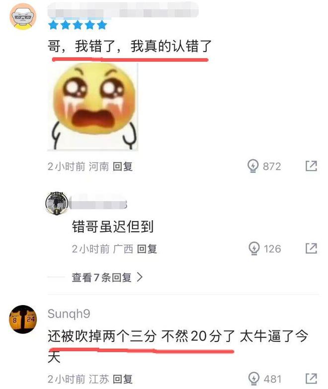 到了下半場,趙繼偉迎來強(qiáng)勢反彈,飚中3個三分球,并且強(qiáng)攻打成2+1,為球隊(duì)逆轉(zhuǎn)取勝做出巨大貢獻(xiàn)。在趙睿5犯離場后,趙繼偉頂著4犯壓力,幫助中國男籃將優(yōu)勢保持到最后。整場比賽打下來,趙繼偉在替補(bǔ)17分鐘的上場時間里,8中4,三分球6中4(其實(shí)還被裁判吹掉2個三分),拿到14分2籃板2助攻1搶斷,正負(fù)值+10。有球迷直接向趙繼偉道歉:哥,我錯了,真的錯了。