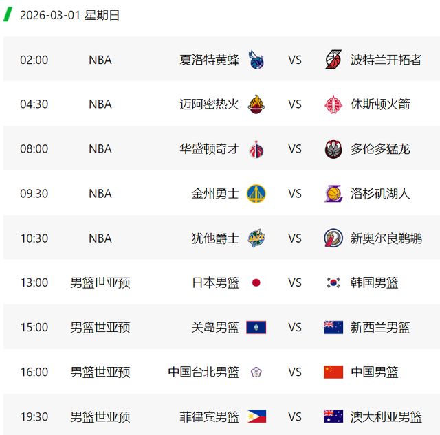 根據賽程,第四輪的比賽將在3月1日開打,中國隊客場對陣中國臺北隊,將在北京時間下午16點開打,央視CCTV5頻道現場直播。此外,同組的日本隊繼續坐鎮主場迎戰韓國隊的做客,開球時間是下午13點。