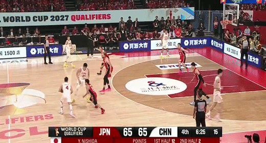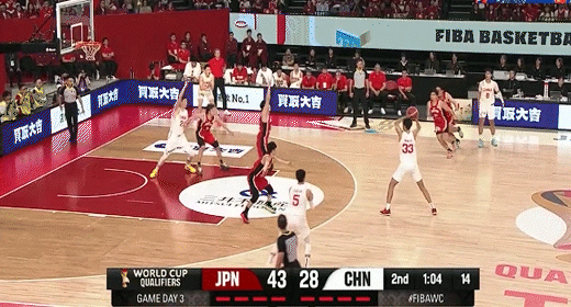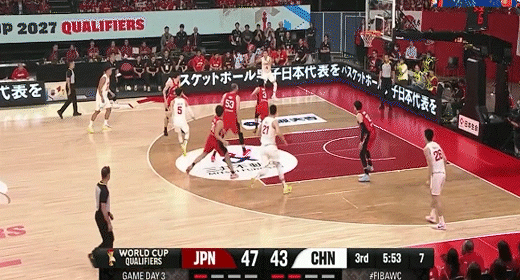 第二節日本男籃西田優大拿下8分,中國男籃趙睿拿下6分,半場結束日本男籃47-33領先中國男籃