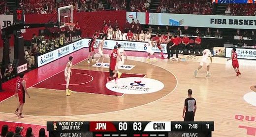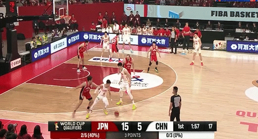 高詩巖借掩護三分追平比分!中國男籃49-49日本