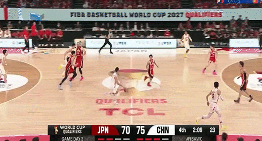 日本男籃連續前場板二次進攻得分!中國男籃15-27日本