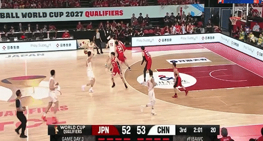 廖三寧突分朱俊龍三分命中!中國男籃61-58日本