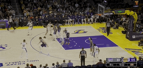 東契奇和肯納德在本節后段連續外線開火幫助湖人大比分領先結束首節,首節結束,湖人36-18國王。
