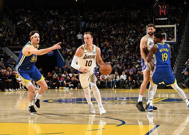 本場比賽中,剛剛在交易截止日前從亞特蘭大老鷹加盟湖人的替補后場大將盧克-肯納德(Luke Kennard)的表現(xiàn)還是相當(dāng)不錯的??霞{德全場出場21分14秒,投籃5中3,三分線外3中2,罰球1中1,得到了9分2籃板1助攻的數(shù)據(jù),還有2次失誤和2次犯規(guī),正負值更是達到了全場最高的+16??霞{德在本場比賽中也是又一次將自己在外線投籃方面的特點發(fā)揮了出來,他在進攻端的效果相當(dāng)不錯,他也是又一次在出手次數(shù)不多的情況下得到了一些分數(shù)。肯納德的防守能力當(dāng)然是比較一般的,但從本場比賽的情況來看,他的防守能力似乎也并沒有那么糟糕。肯納德在場上時球隊的局面相當(dāng)不錯,這也能夠體現(xiàn)在他超高的正負值上,這也說明了他確實是能夠在球隊第二陣容中起到關(guān)鍵的作用。