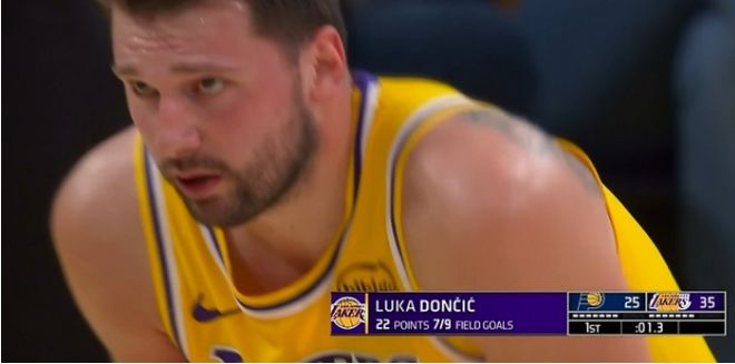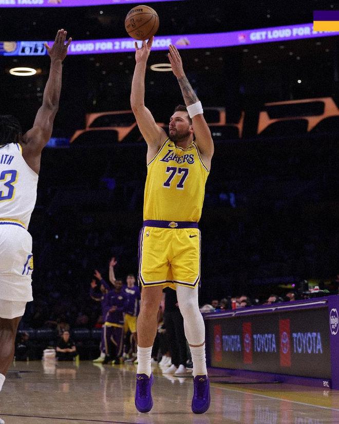 本場面對東部倒數第一的步行者對決,湖人兩位狀元詹姆斯與艾頓均因傷缺席。東契奇開啟個人進攻模式,他首節打滿12分鐘貢獻9中7的投籃,尤其是外線三分5中5彈無虛發,且造犯規4中3,一人狂轟22+4+3的超級數據。