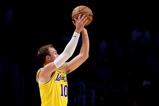 本場比賽中,湖人的替補后場新援盧克-肯納德(Luke Kennard)的狀態依然是非常出色的。康諾頓全場出場26分43秒,投籃9中6,三分線外5中3,得到了15分7籃板3助攻的數據,沒有失誤和犯規,正負值更是達到了全場最高的+26。肯納德在進攻端的效率依然非常穩定,他也是又一次展現出了自己全面的得分能力和出色的投射能力。很顯然,肯納德在場上的作用遠不止一名投手,他具備一定的持球進攻能力和投射能力,他在傳球和組織方面的表現也是有目共睹的,他在進攻端能夠給球隊提供全方位的支持。至于防守端,至少肯納德在本場比賽中也沒有遇到什么太大的麻煩,也算是完成了自己的任務了。+26的正負值更是能夠充分證明一點,肯納德在場上時球隊的局面一片大好。
