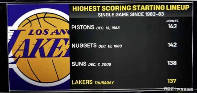 昨日,詹姆斯重返賽場,湖人隊全隊火力全開,一舉斬獲142分的高分,其中首發五人更是合力貢獻了137分,這一成績在隊史上排名第四。在詹姆斯缺陣期間,湖人隊也曾豪取三連勝,接連戰勝森林狼與尼克斯。