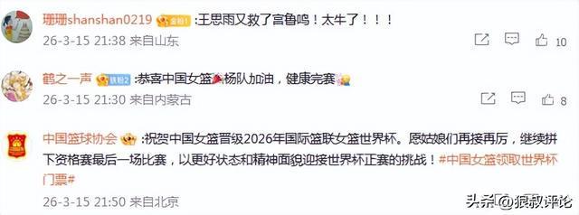 中國籃協官方發文:祝賀中國女籃晉級2026年國際籃聯女籃世界杯。愿姑娘們再接再厲,繼續拼下資格賽最后一場比賽,以更好狀態和精神面貌迎接世界杯正賽的挑戰。