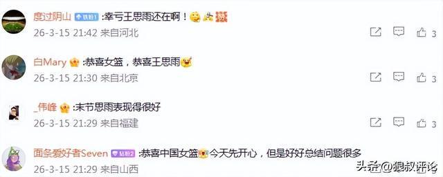球迷對于王思雨的表現給出了高度評價: