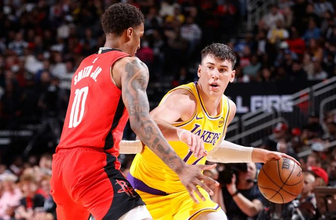 在此前的一場NBA常規(guī)賽中,洛杉磯湖人以100比92戰(zhàn)勝了主場作戰(zhàn)的休斯頓火箭。本場比賽后,豪取6連勝的湖人的戰(zhàn)績提升到了43勝25負,排名繼續(xù)穩(wěn)定在西部第3位,與身前的圣安東尼奧馬刺的勝場差為7場,與身后的火箭的勝場差為1.5場;而在最近3場比賽中輸?shù)袅藘蓤霰荣惖幕鸺膽?zhàn)績則是下滑到了41勝26負,繼續(xù)排名西部第4位,與身前的湖人的勝場差為1.5場,與身后的丹佛掘金的勝場差為半場。