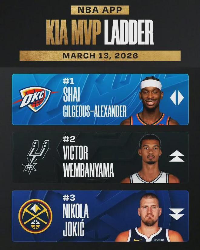 NBA公布的最新MVP排行榜,文班亞馬已升至第二,亞歷山大繼續高居榜首,約基奇跌至第三,同時前者今年還是DPOY的頭號競爭者。